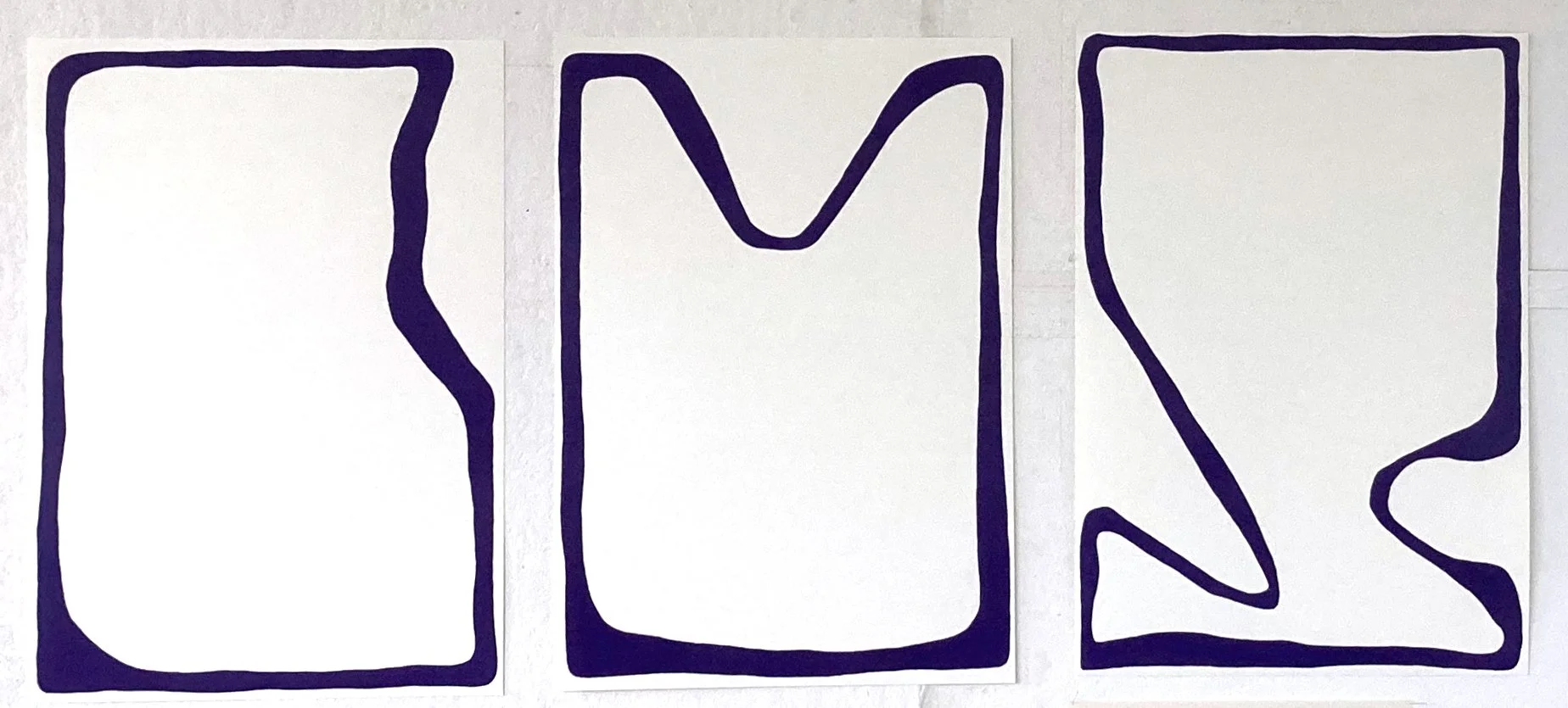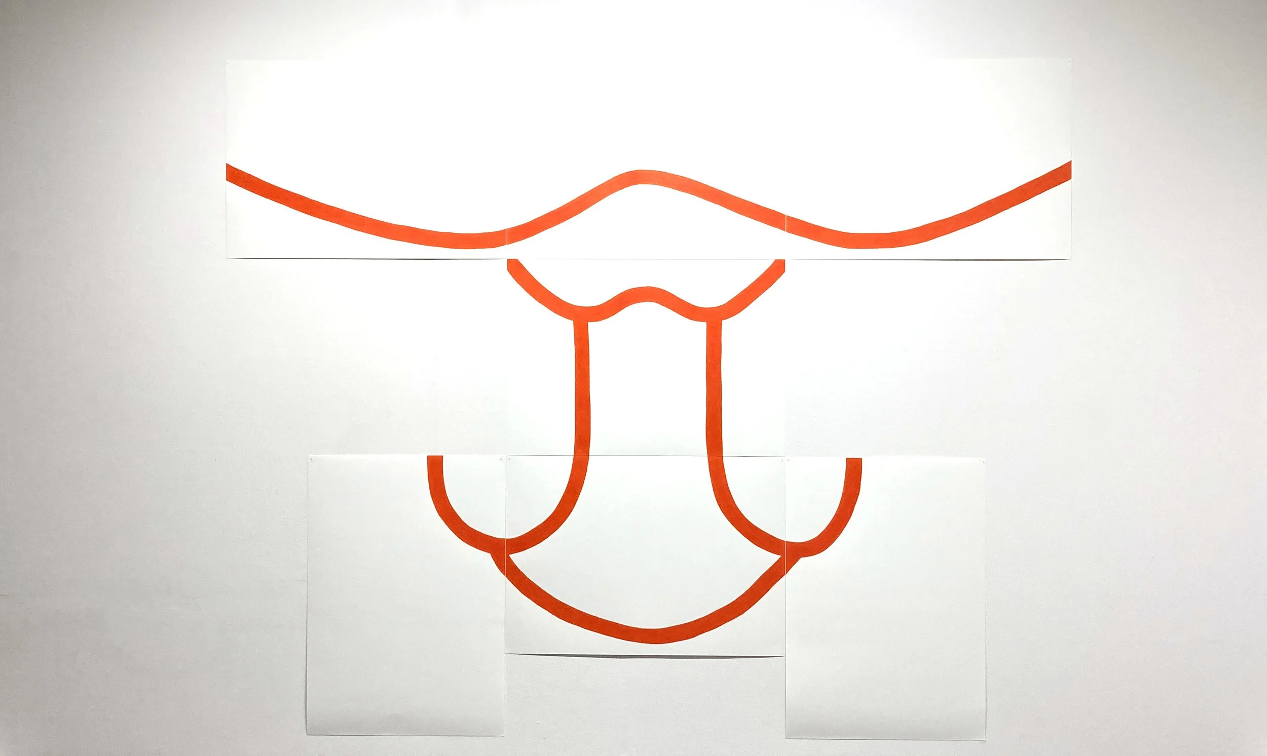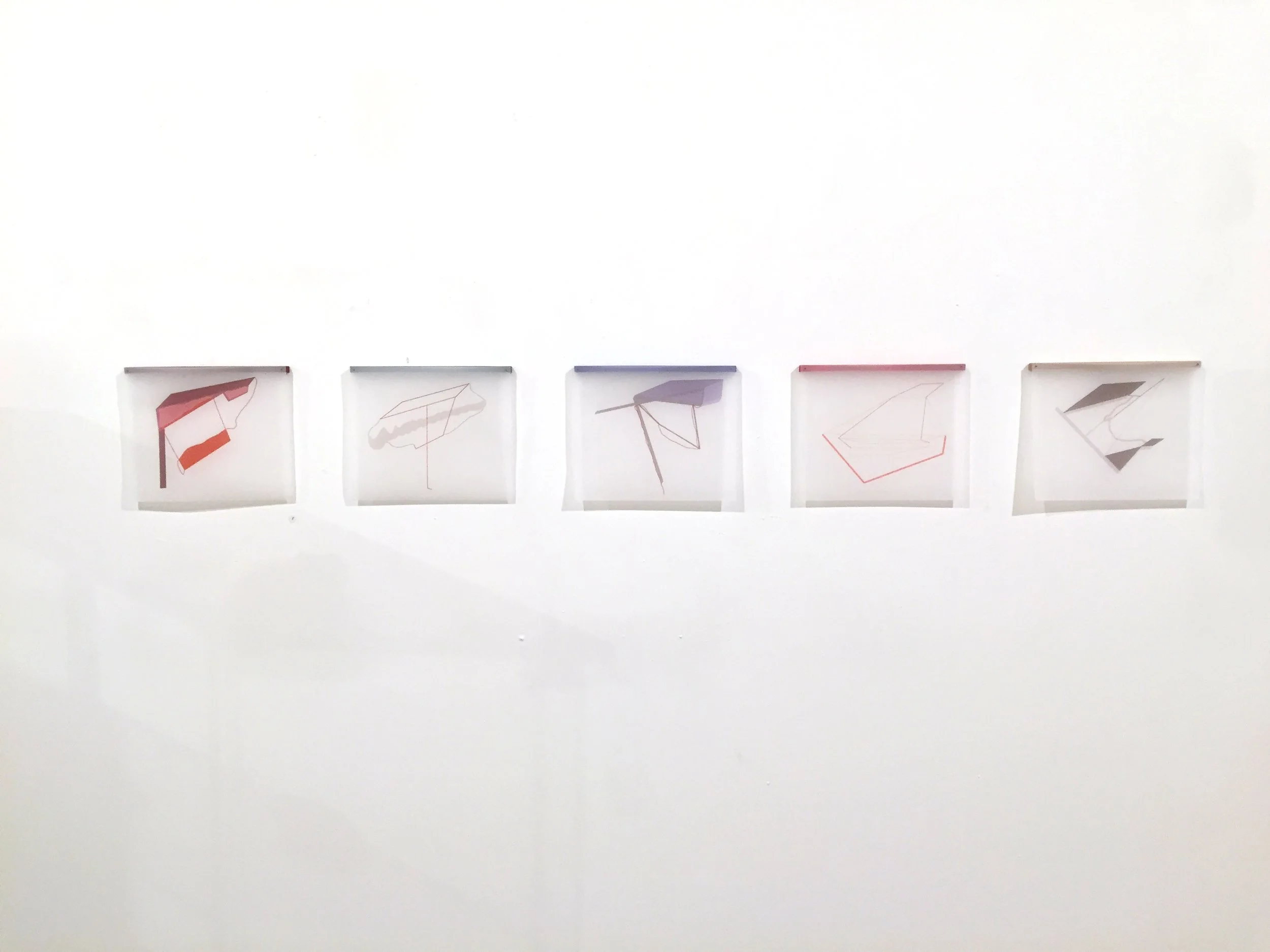 (links: Ausstellungsansicht; Digitaldruck auf Transparentpapier A4, Holzleisten bemalt)